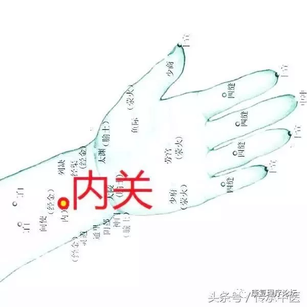 内关是心包经的络穴,别走手少阴三焦经,又是八脉交会穴,能清心胸之闷热,使从水道下行。
